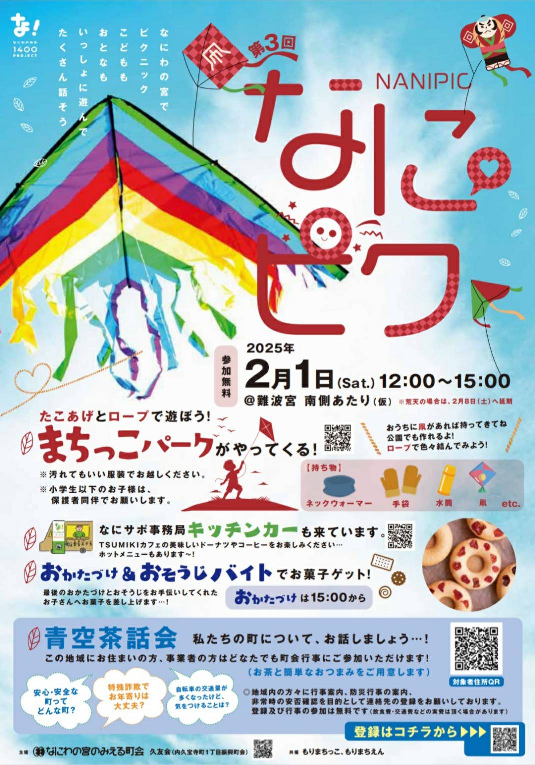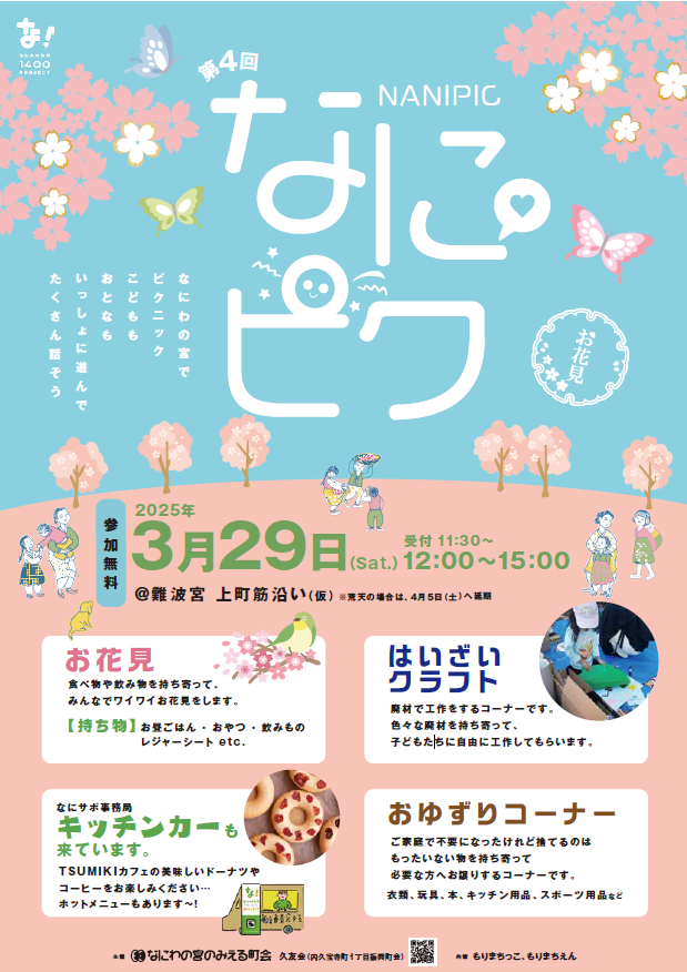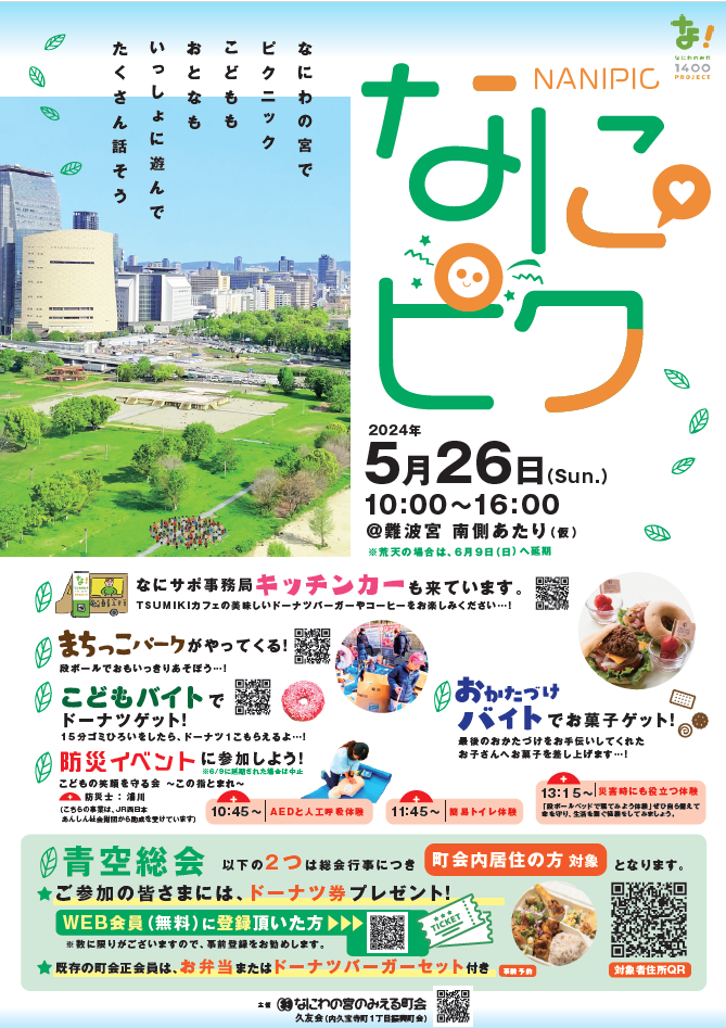 人の居場所づくりのイベントです。「なにわの宮でピクニック、子どもも大人もいっしょに遊んで、たくさん